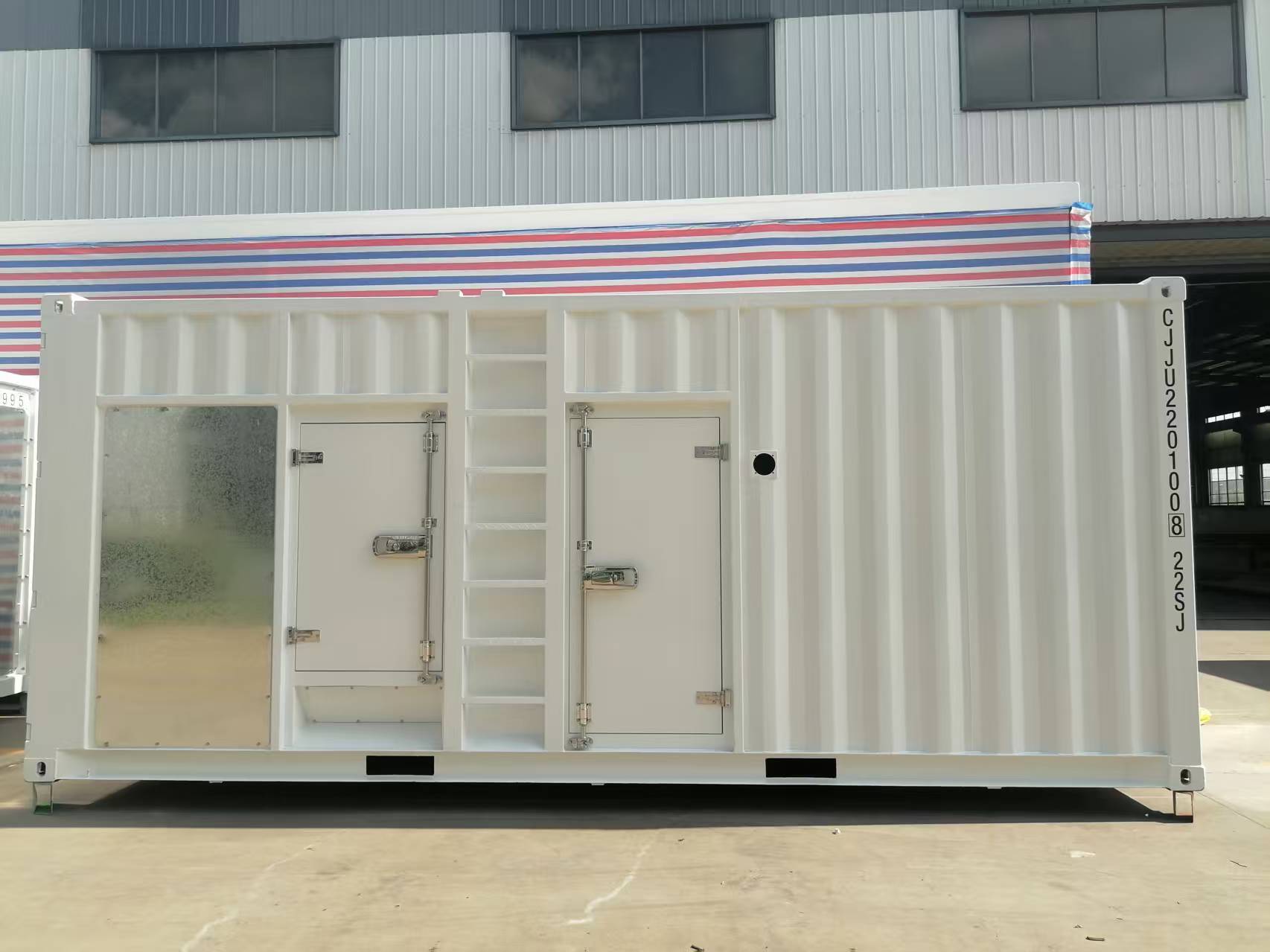 用集装箱结构做为箱体,箱内安装柴油发电机组、燃油箱以及其它专用成套设备与附件,集装箱设有进出风道、百叶窗、消声系统、照明系统及其它辅助配套系统。其优点在于运输方便、低噪音运行、散热性能好、维护方便。